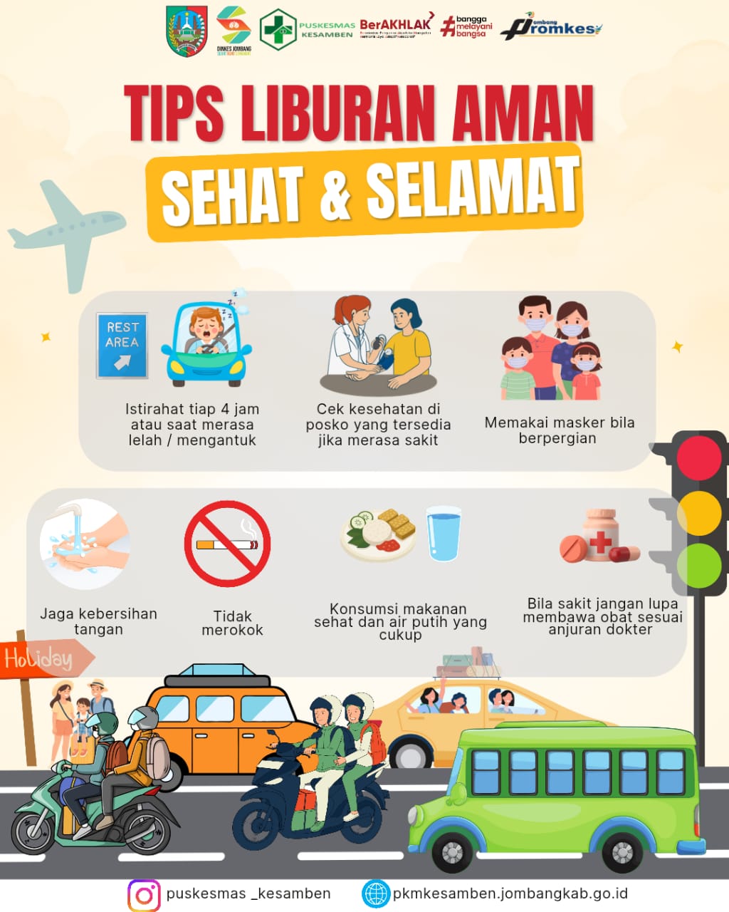 Mari wujudkan liburan yang aman, sehat, dan selamat bersama Puskesmas Kesamben. Selamat berlibur dan tetap jaga kesehatan!